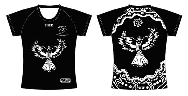 With unique artwork of the Wembley Kulbardi (Magpie) by Aunty Rhonda Collard/Spratt and exclusive to Wembley Junior Football Club, why not get yourself ready for the football season by purchasing one of these shirts that will no doubt be popular.